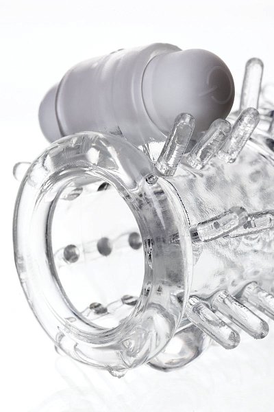 Насадка на пенис TOYFA A-Toys с вибропулей и шипами - 13,4 см.