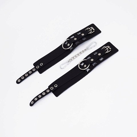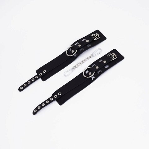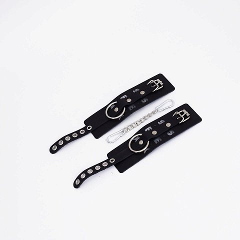 Оковы регулируются с помощью прочного ремешка из натуральной кожи , что обеспечивает комфортную посадку на любой обхват щиколотки или запястья. В комплект входит прочная соединительная цепочка с двумя карабинами , гарантирующая надежность и контроль.