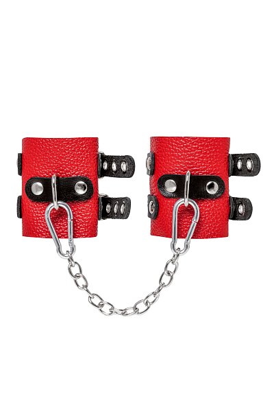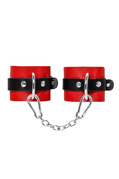 [DETAIL_TEXT] => Добавьте пикантную деталь в ролевую игру и воплотите самую смелую сексуальную фантазию в реальность! Мягкие, красные, кожаные наручники с люверсами на жёстких, чёрных ремешках могут стать стильным аксессуаром, а могут послужить вашим целям по своему прямому назначению. Частичное обездвиживание и невозможность двигать руками дают вам полную власть над партнером – взрослые игры для взрослых. Наличие двух колец и карабинов, соединенных между собой металлической цепочкой, позволяет использовать изделие как раздельно – аксессуар-манжеты, так и как наручники для фиксации. К широким металлическим кольцам также можно присоединить и другие аксессуары при помощи карабинов. Благодаря универсальному размеру наручники могут использоваться и мужчинами, и женщинами. Размер легко регулируется с помощью металлических пряжек, органично вписывающихся в общий стиль. Длина манжет  - 18 см, ширина - 5,5 см.