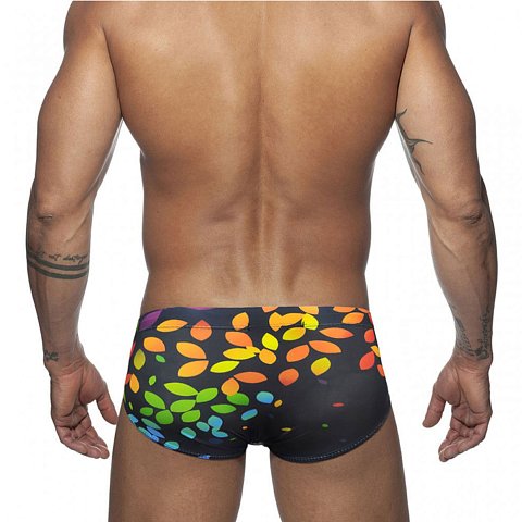 Черные мужские плавки с цветными листиками