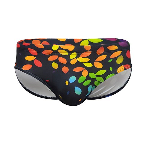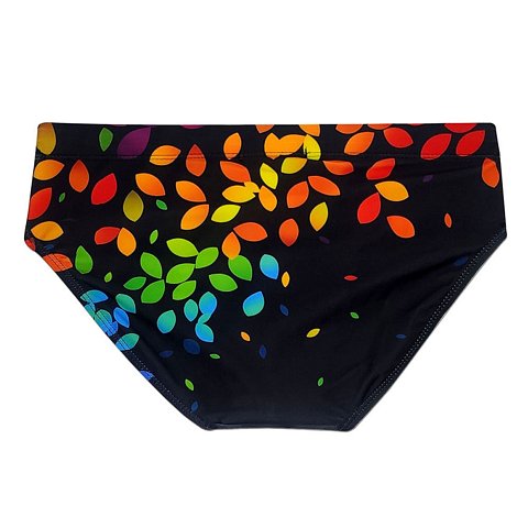 Черные мужские плавки с цветными листиками.