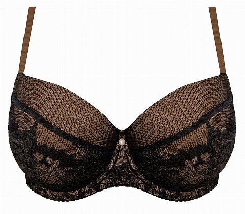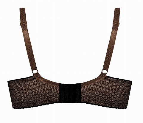 Бюстгальтер на косточках, с дополнительными боковыми поддержками, чашки шитые, на тонком поролоне, со съёмными пуш-ап вкладышами, внутри чашечки проложены хлопковым трикотажем, внешняя сторона гладкая. Бретельки не отстёгиваются, регулируются по длине. На спине застёжка на удлинитель, количество крючков в ряду застёжки увеличивается пропорционально размеру бюстгальтера.