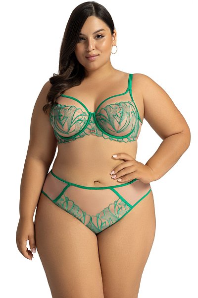 Комфортный бюстгальтер 2161 М Moss выполнен на основе модели 1396 в зеленом цвете с мягкими чашками, на косточках, шитыми из сетки телесного цвета с вышивкой зелёной нитью. Пояс из эластичного сетчатого полотна. Бретельки регулируются по длине, не отстёгиваются, на спине застёжка на удлинитель на 2 или 3 крючка, фурнитура металлическая цвета меди. Мягкие чашечки из чувственного тюля, богато расшитого весенними листьями, плотно облегают грудь, естественно придавая ей форму и приподнимая. Освежающий оттенок сочного зеленого цвета придает модели характер, подчеркивая неоспоримые преимущества зоны декольте. У бюстгальтеров/купальных лифов AVA довольно тугой пояс, который адаптируется под тело после нескольких дней носки или одной-двух стирок. Рекомендуем использовать удлинитель пояса бюстгальтера на первое время либо выбирать следующий за «своим» размер, с поясом длиннее.
