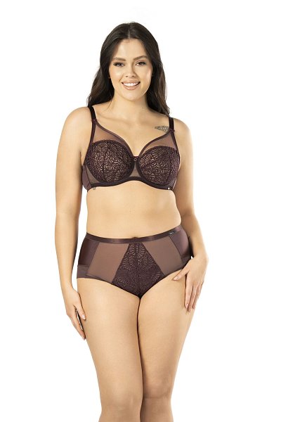 Бюстгальтер Daisy выполнен на косточках, чашки мягкие, шитые из сетки с вышивкой нитью в тон, нижняя часть продублирована сеткой, боковой подкрой из сетки, бретельки не отстёгиваются, регулируются по длине, спинка из микрофибры. На спине застёжка на удлинитель. Фурнитура металлическая цвета меди.