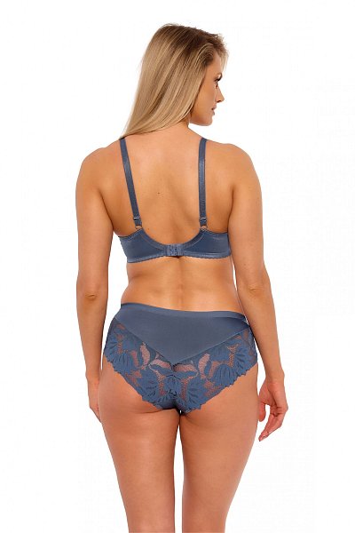 Бюстгальтер Keto PU выполнен на косточках, с дополнительными боковыми поддержками, чашки шитые, нижняя часть на тонком поролоне, внутренняя сторона прошита хлопковым трикотажем, верхняя часть чашки из тонкой сетки, внешняя часть из кружевного полотна с растительным рисунком, спинка из стабилизирующей сетки. Бретельки не отстёгиваются, регулируются по длине, на спине застёжка - удлинитель на крючках, фурнитура металлическая крашеная.