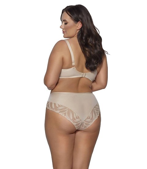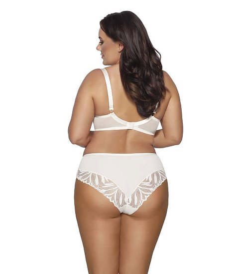Бюстгальтер 2105 PU Yasemin выполнен на основе модели 1030 на косточках, чашки шитые, нижняя часть на тонком поролоне, внутренняя сторона прошита хлопковым трикотажем, внешняя часть из эластичного трикотажа, верхняя часть из эластичного кружева, продублированного сеткой для лучшего прилегания к груди (телесная в черном и телесном варианте). Пояс из плотной стабилизирующей сетки. Бретельки не отстёгиваются, регулируются по длине, на спине застёжка - удлинитель на 2 и 3 крючка, фурнитура металлическая цвета меди. У бюстгальтеров/купальных лифов AVA довольно тугой пояс, который адаптируется под тело после нескольких дней носки или одной-двух стирок. Рекомендуем использовать удлинитель пояса бюстгальтера на первое время либо выбирать следующий за «своим» размер, с поясом длиннее.