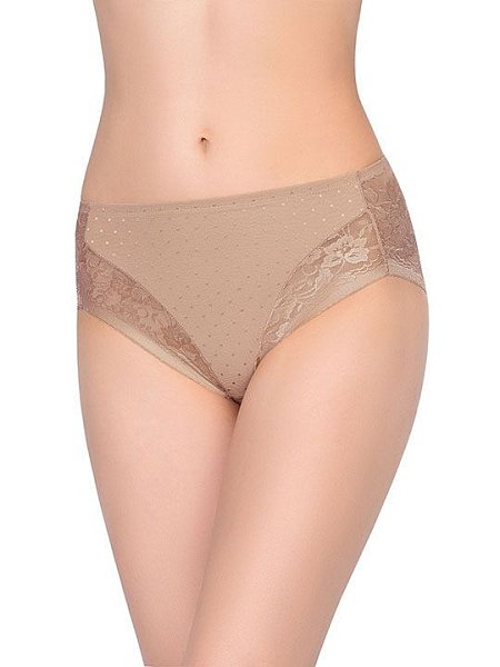 Трусы-утяжка со средней линией талии из эластичной сетки с укрепленной передней частью. Степень коррекции STRONG. Высота бочка 10 см. Изюминка коллекции - цветочный дизайн кружева и плоские фестоны по ножке, совершенно не заметны под одеждой. Ластовица выполнена из уникального хлопкового материала.