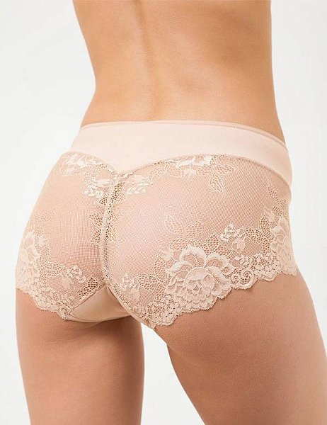 Трусы-слип с завышенной линией талии из эластичной микрофибры и мягкого цветочного кружева. Высота бочка 13 см. Ластовица выполнена из уникального хлопкового материала.